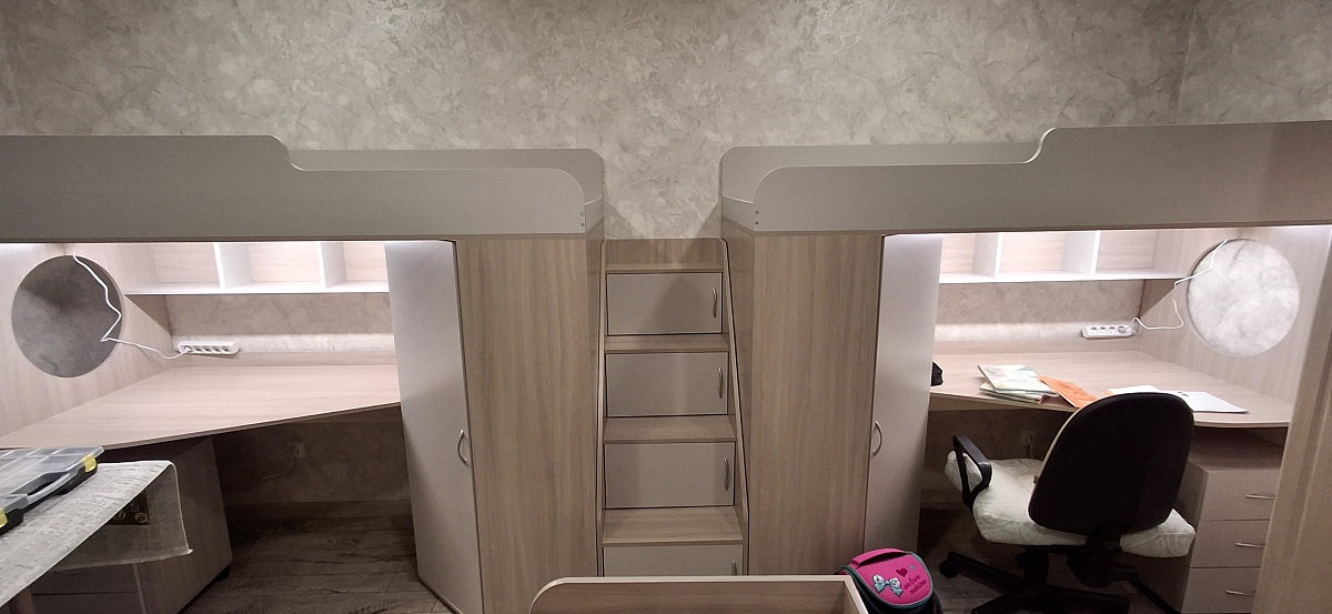 Всё вроде прекрасно, собралось отлично, хоть и не хватает разделения по блокам некоторых элементов для сборки. Все отверстия сошлись, лишних не было. За то положили лишнию полочку. Не хватила чуток крупных болтов для сборки, благо от старой мебели остались. Мне кажется, что щит под матрас и стенку с окошком надо бы делать по толще в стандарте.и добовлять какие нибудь уголки которые дополнитель поддерживали бы щит с матрасом в районе рабочего места, но это наверное перестраховка. А так зачет, мне всё понравилось.