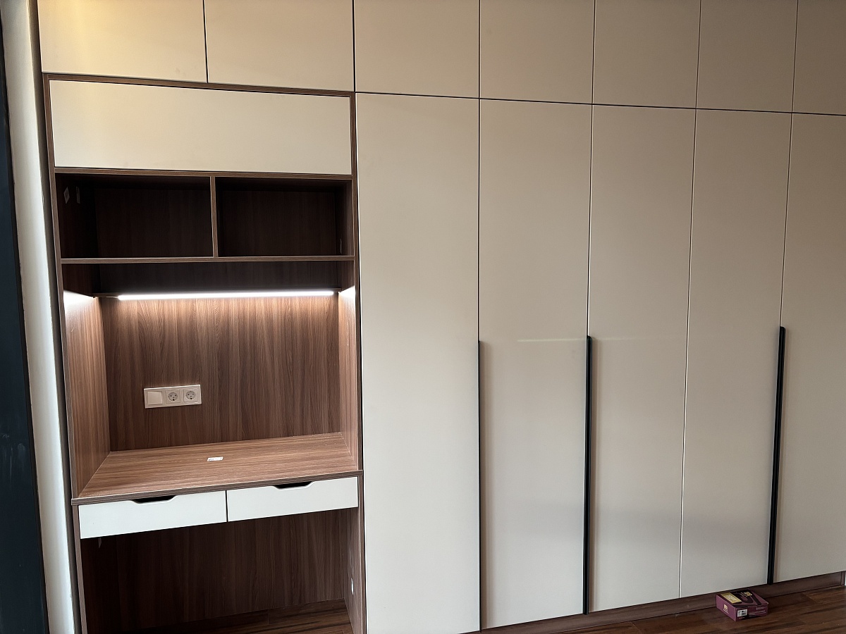 Заказали эту стенку дефолтного цвета, но не стандартной высоты и глубины, также убрали двойной шкаф и добавили одинарный. С эскизом конечно затянули, но изготовили и доставили быстро. Что порадовало: на каждой детали наклейка с номером детали, достаточно удобная интерактивная схема сборки. Проблем со сборкой практически не было, за исключением незначительных ошибок при проектировании. В целом мы очень довольны мебелью. Менеджерам и всему персоналу спасибо!