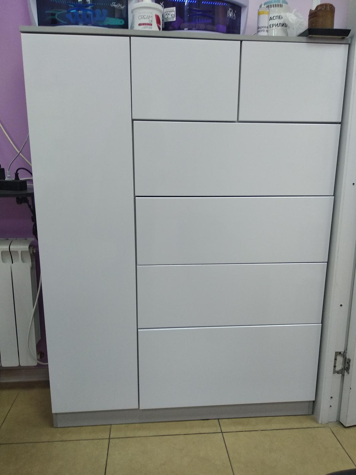 заказ №507985Нужен был шкаф на балкон, но обычный не подходил, т.к. выступы подоконников, плюс хотелось внизу побольше места. Решили брать отдельно тумбу и шкаф, в одном стиле. На данном сайте всё удалось сделать прекрасно - выбрать индивидуальные размеры, подогнать 2 предмета друг к другу по внешнему виду. После оформления заказа, со мною сразу связались, подтвердили все параметры, через 2 недели привезли. От сборки отказались, собирали сами, без проблем - все комплектующие на месте, все детали с маркировкой, в комплекте есть инструкция по сборке, все отверстия уже на месте (только места под магниты не совпали, пришлось самим сделать). Внешний вид соответствует описанию, также как и цвет (я заказывала "Ясень Шимо Темный").Большое спасибо магазину!