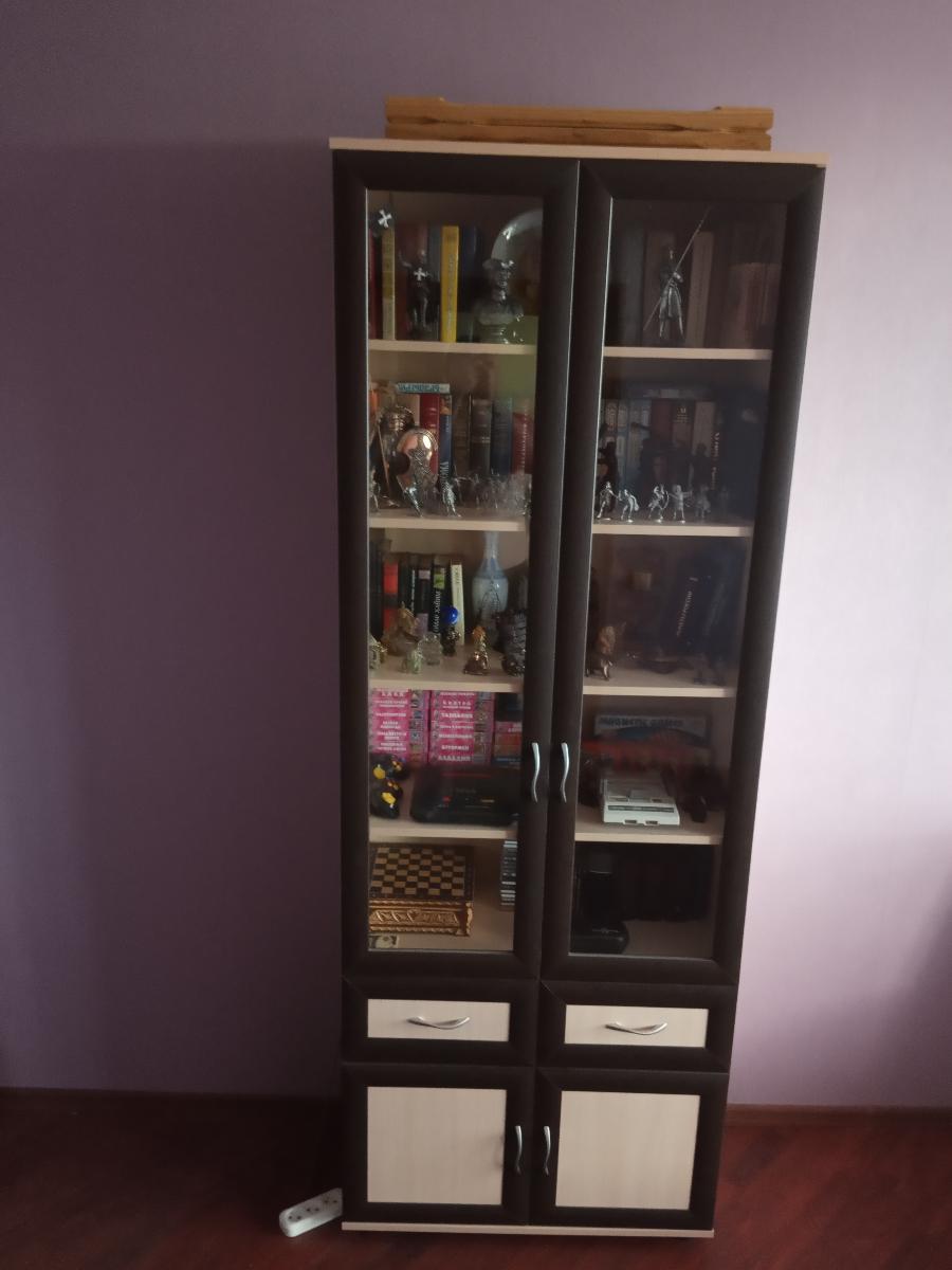 Мне надо было подобрать шкаф точно по размеру ниши, остановилась на варианте 2 шкафа - узкий пенал и двустворчатый. Рядом они встали, как влитые, как одно целое. Очень вместительные, поместились все книги, и внизу большие вместительные шкафы. Очень довольна. Собрали своими силами, все просто. Правда, ручки цвета бронза покупала отдельно, на сайте не было тех, что мне надо (золотые не подошли к другой мебели в комнате). Отделка шкафов аккуратная, нет ни сколов, ни царапин, ни косых углов. Библиотека украсила комнату, очень стало уютно. Это не первая мебель, купленная мною на Бестмебельшоп, и каждой покупкой я довольна! И цены радуют, и качество. Рекомендую!