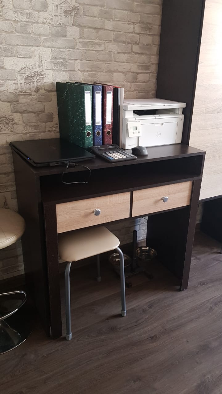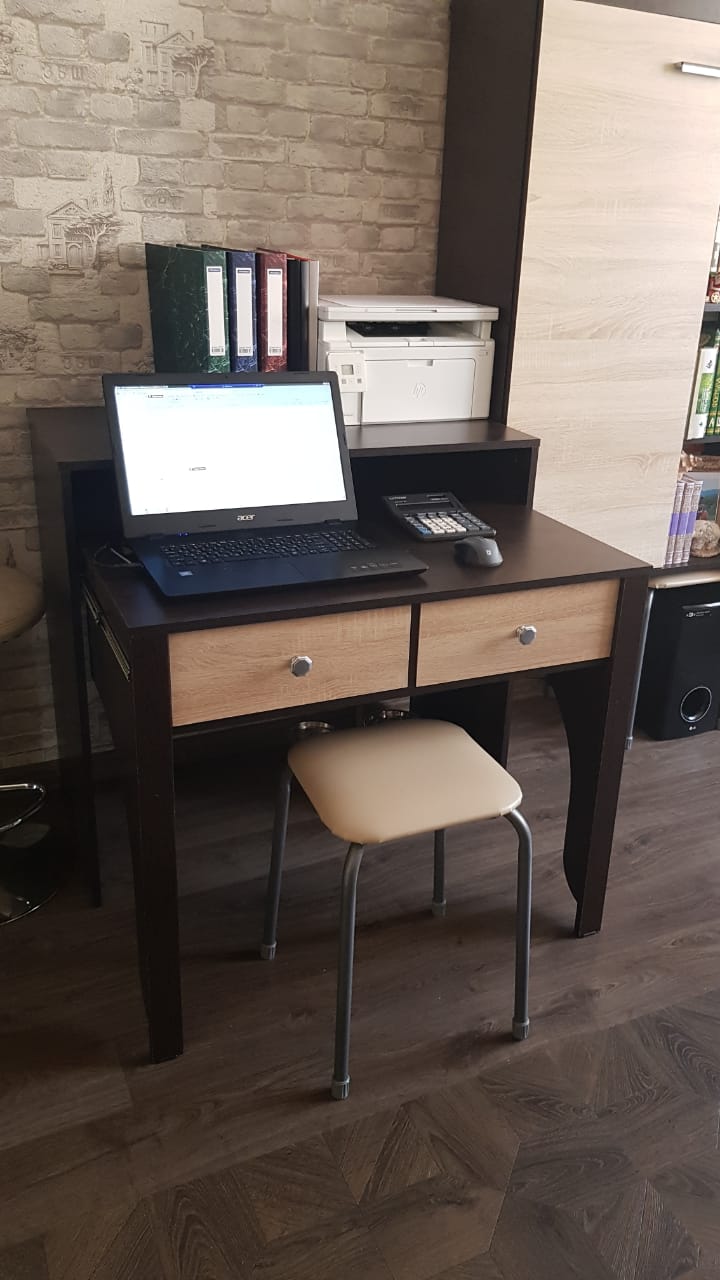 Очень удачное решения для организации рабочего места на удалёнке. Стол компактный, поэтому хорошо вписался в небольшую гостинную. Для работы достаточно выдвинуть стол, а после рабочего дня задвинуть обратно. Можно подбирать цвета и размер, как мы и сделали. Стол отлично подошёл по дизайну к нашей стенке. При сборке проблем не было, все детали и отверстия на своих местах.