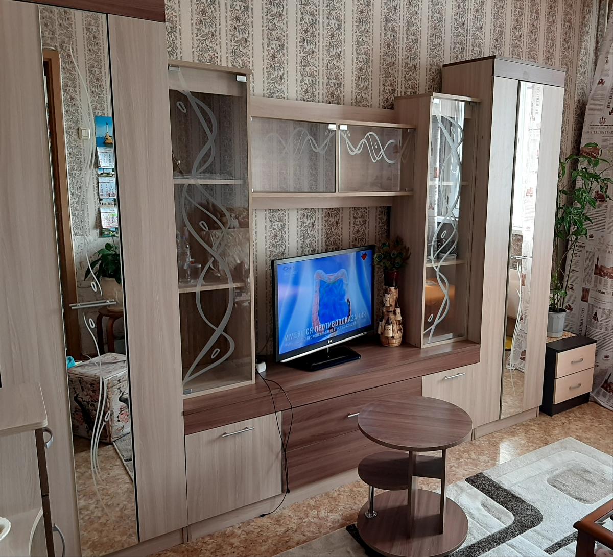 Заказ 440645 Стенку изготовили с дополнительным ящиком внизу и дополнили стёклами сверху за минимальную доплату.Внутри изменили наполнение шкафов, добавили штангу.Менеджеры внимательны, доброжелательны!Очень довольна тем, что можно изменить размеры, добавить что-то или убрать.Стенкой и сервисом магазина очень довольна!Цена-качество соответствует.Недорого, но максимально удобно.Заказали в тон туалетный столик и столик на колёсах.