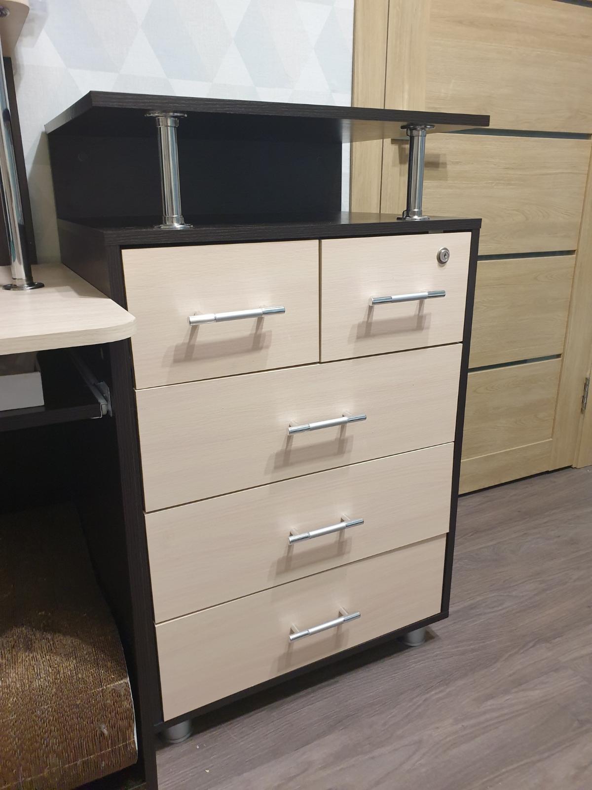 Заказали комод, заказ №334508, изменили цвета корпуса и одного фасада. Комод сделали в срок и к качеству замечаний нет. Изделие полностью соответствует описанию. Дверцы открываются и закрываются нажатием, удобный механизм.