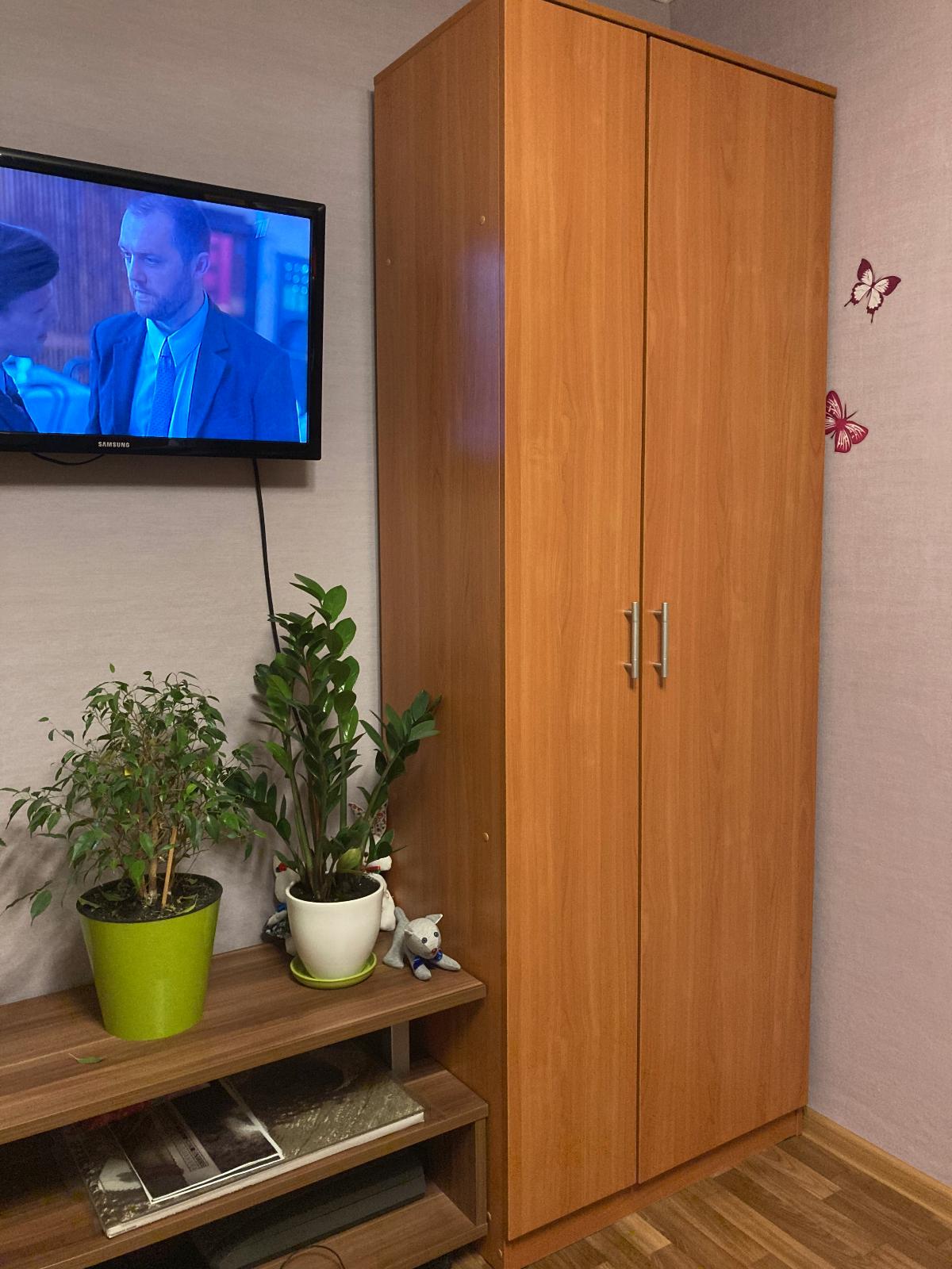 Хотелось подобрать что-то по стилю к двухъярусной кровати. Зашла на сайт. И тут стоит он - этот шкаф. На другие я уже и смотреть не захотела, потому что этот шкаф очень понравился. Устроило всё: можно выбрать любой цвет и сочетание цветов, большое разнообразие внутренней комплектации. Я выбрала платье-платье-бельё. Наличие двух вместительных ящиков и вместительной антресоли - тоже большой плюс. Качество изготовления тоже хорошее, недостатков не обнаружила. Шкаф был доставлен в оговорённый срок, занесли, оплатила наличными после приёма товара. Спасибо за цивилизованное обслуживание !Цена соответствует материалу и качеству товара, я так считаю.