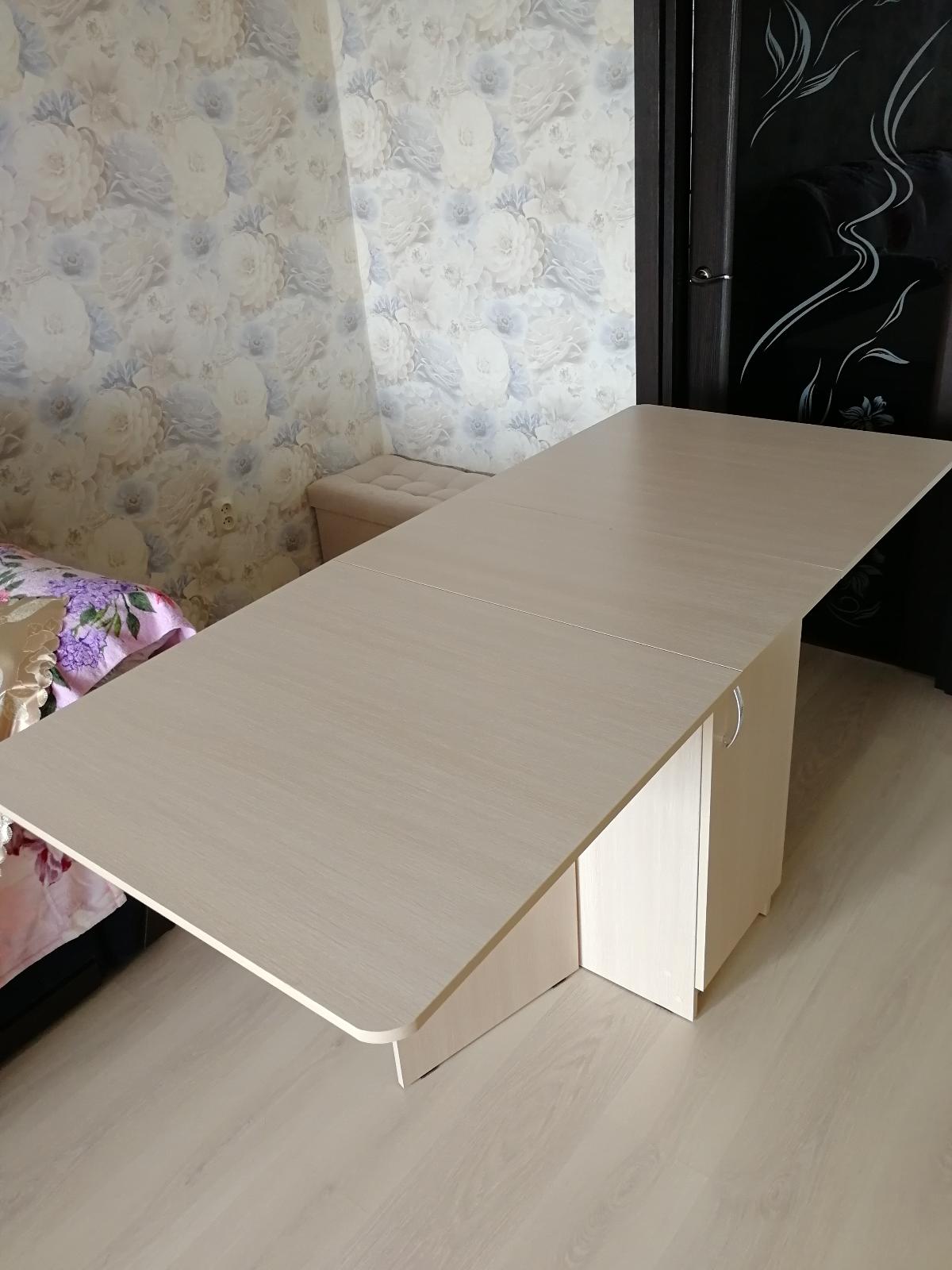 Преобрели стол СТКН-4 BMS в январе 2020г. (заказ 00000338608 от 10.01.2020) Покупкой остались довольны, в разложенном виде стол очень большой, тумба очень вместительная, внутри одна полка, получается два отделения. Правда тяжёлыми предметами её лучше не нагружать, т.к.если стол нужно подвинуть он становится очень тяжёлым. Понравилось отсутствие острых углов, углы стола чуть-чуть закруглённые. Доставка бесплатная, а собирали сами. Очень удобна возможность выбора цветов и размеров на этом сайте. Получилось как говорится дёшево и сердито. Стол очень понравился, всем рекомендуем!) 👍