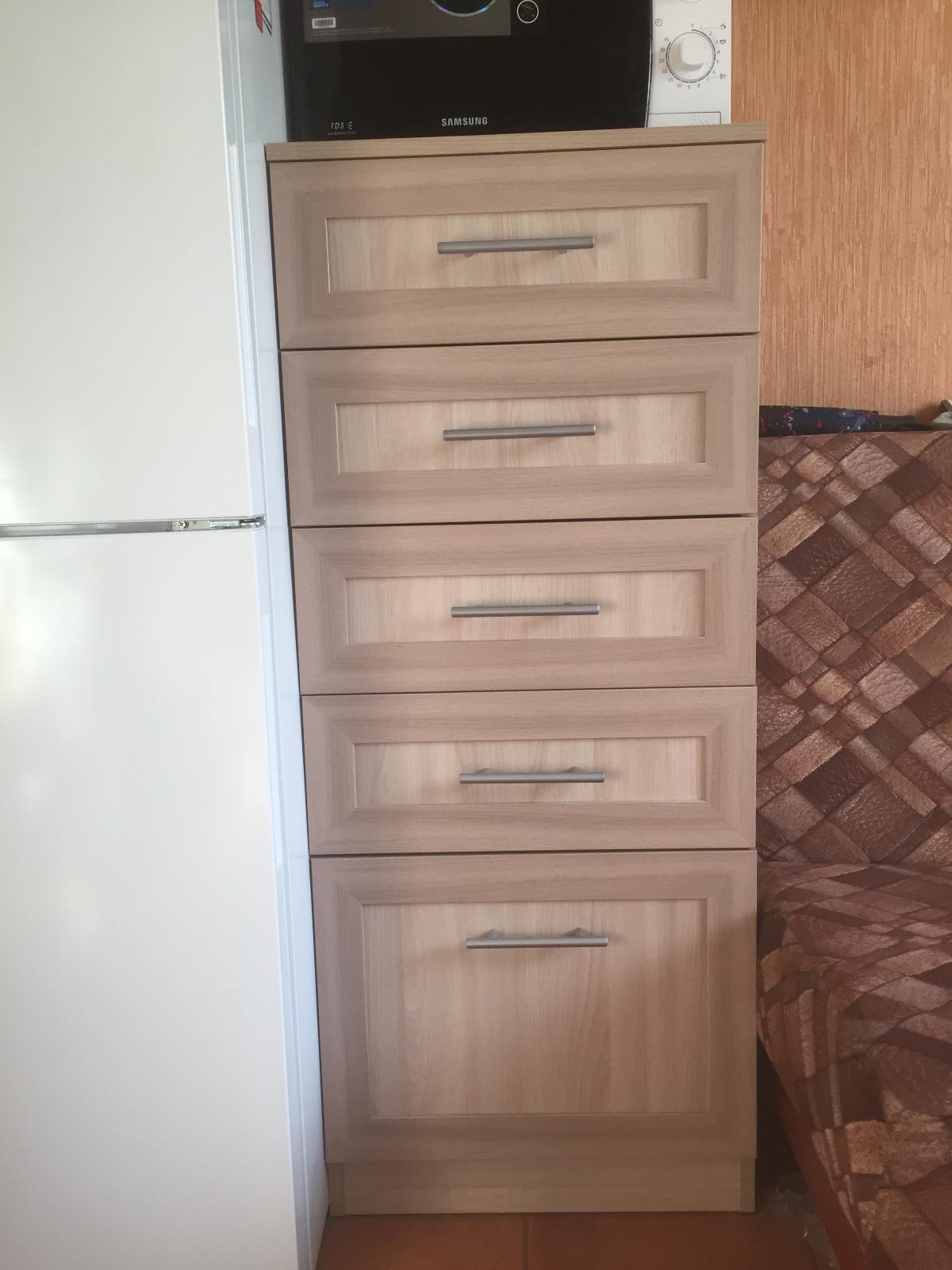 Год назад после ремонта кухни покупали этот комод. Порадовала возможность выбора размеров и цвета, причём выбор большой. Очень довольна покупкой, уместилась вся техника и лишняя посуда, в ящичках храню пакетики корма для котов и собаки. Уже в этом году купили такой же комод на балкон, но попросили сделать вместо цоколя- выкатной ящик плюс, конечно же индивидуальные размеры( как я люблю эту опцию!). Комод вышел высокий( 97см. и ширина такая же), но не глубокий(33см.) Всё сделали на отлично! И по срокам не затягивали. Спасибо большое!