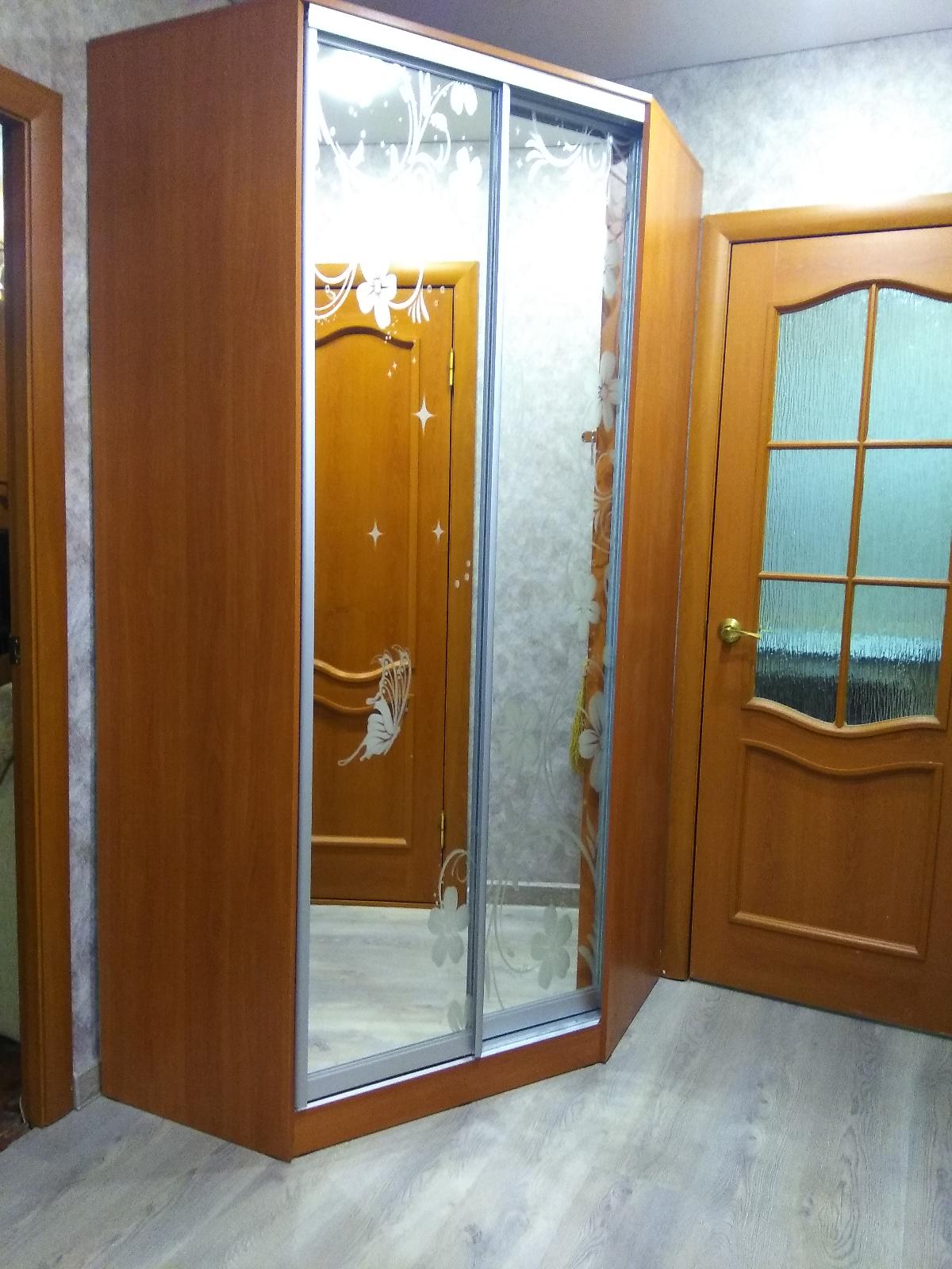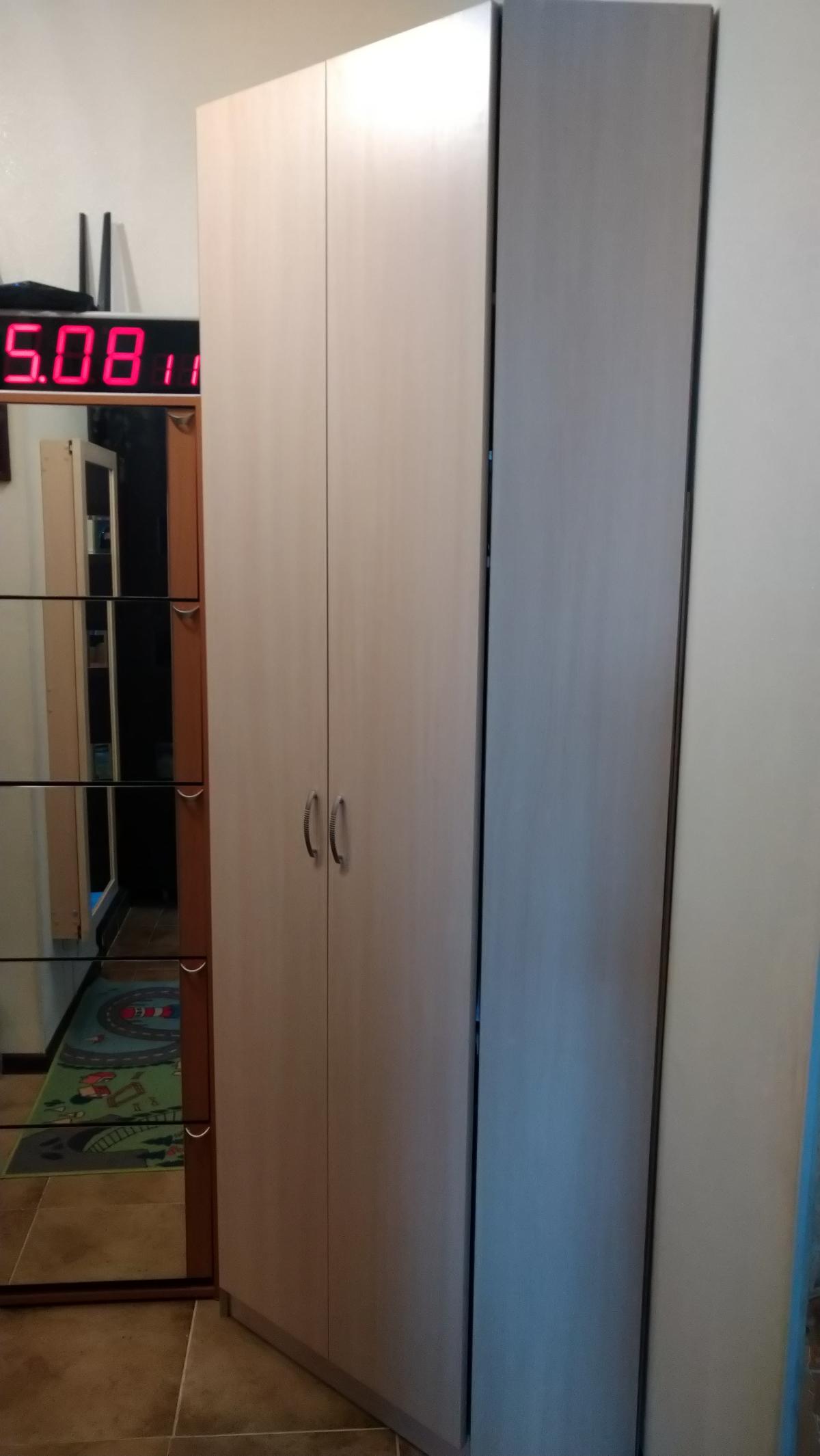 Шкаф нас удивил. Он оказался длинным и тонким (НЕ таким широким и коротким как на ваших картинках). Матового стекла в нем тоже нет. Он весь деревянный (или что там за материал). Мы думали хранить в нем папки, но они, конечно же, НЕ везли. В итоге мы приспособили его под детские вещи и, в целом, довольны. Смотрится стильно, как видите на фото (сверху лежит рамочка, не обращайте внимания). Убираться очень удобно, когда мебель висит. Благодаря вашей компании столы у нас тоже навесные и мы счастливы)