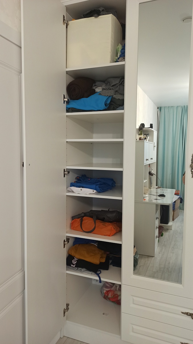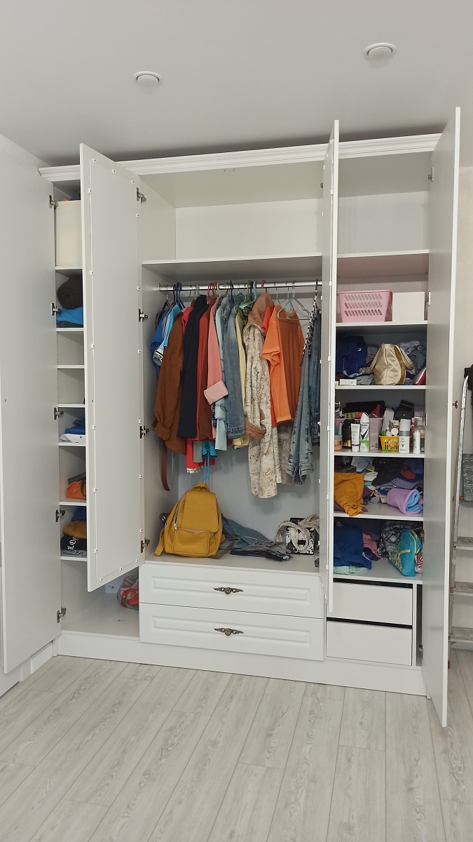 Приобретала шкаф Ава 4 распашной по индивидуальным размерам: 65*2400*43, белый на лоджию. Вид собранного шкафа и качество самого шкафа превзошел мои ожидания (не возлагала каких-то на супер качество) Производителю спасибо!  Доставили быстро, сборка партнерами.  Размер полок  тоже по моим размерам, все что надо поместилось и ещё свободные полки остались. Оказался очень вместительным и даже более того.